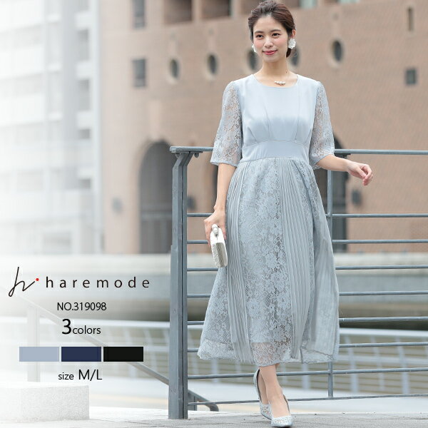 パーティードレス 結婚式 ドレス ワンピース 袖あり 大きいサイズ 小さいサイズ レース ロング ミモレ丈 パーティドレス 結婚式ドレス お呼ばれドレス フォーマル 5分袖 レース切り替え プリーツ パーティードレス【DSA136】
